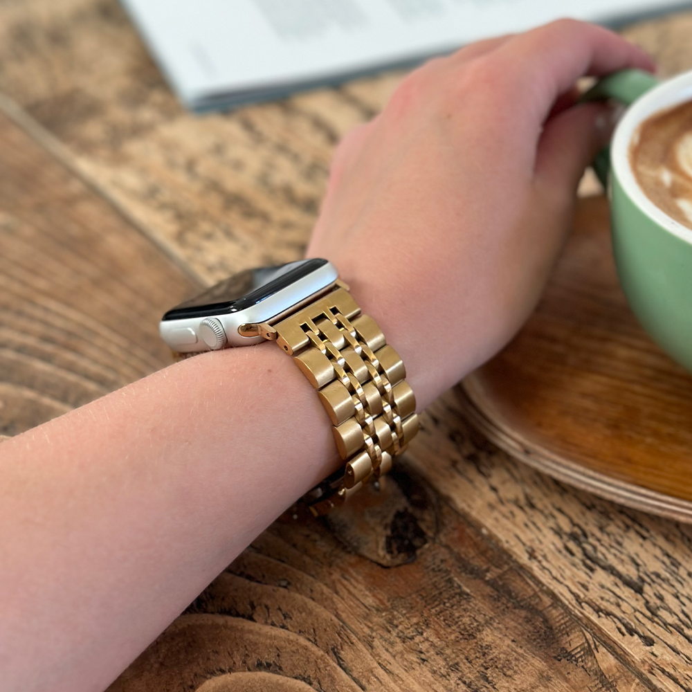 Choose from flashy polished gold, mysterious matte black, or the classic blush. It’s like having a wardrobe for your Apple Watch! The best part? Fully adjustable to fit every wrist size ✨