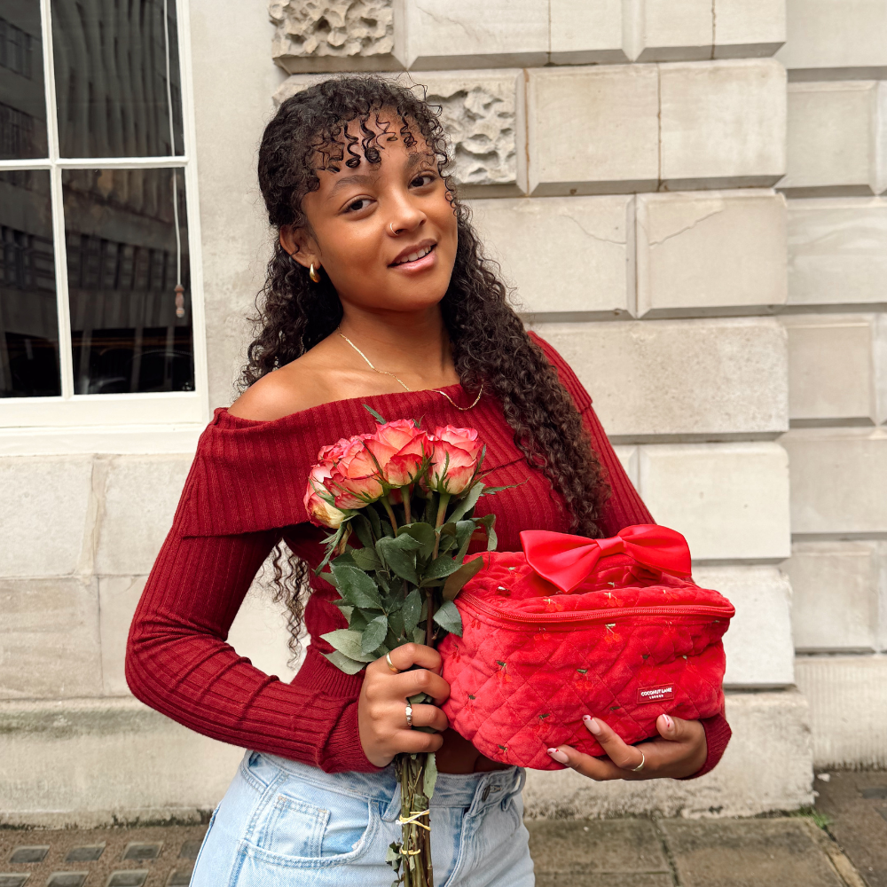 Stay organised in style with our Cherry Velvet Travel Vanity Case.